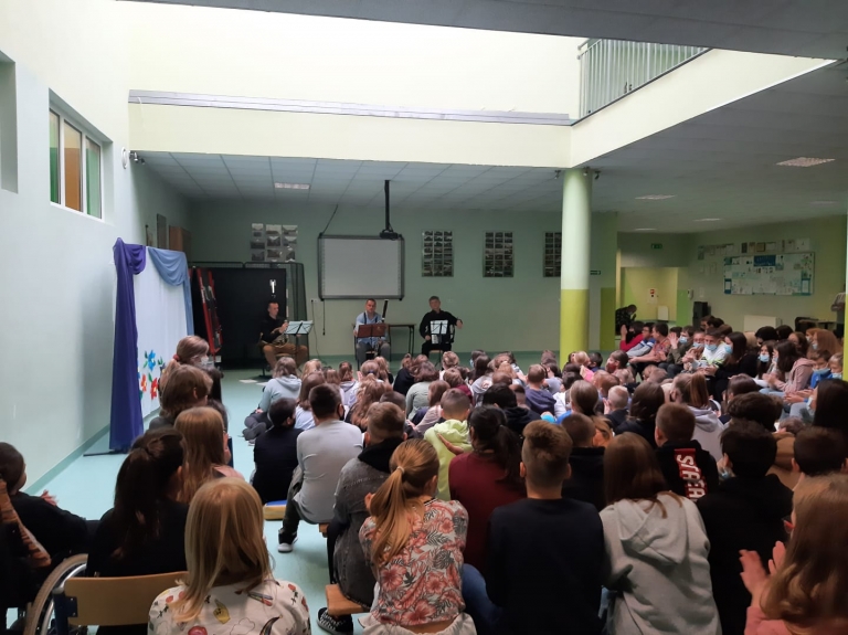 Napisane przez18 października rozpoczęliśmy cykl spotkań z muzyką. Dwa koncerty (dla klas I-III oraz IV-VIII) zagrali dla nas muzycy Filharmonii Dolnośląskiej z Jeleniej Góry. Koncerty połączone z elementami edukacji muzycznej pozwoliły na chwilę oderwać się od nauki i zanurzyć w nutach, które wypełniały szkolne korytarze. Było muzycznie i sympatycznie.